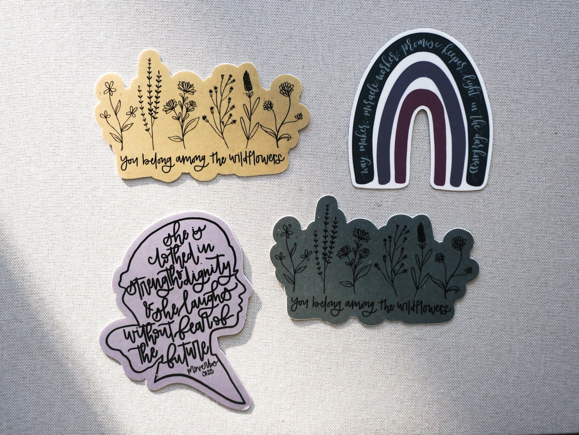 Add this simple yet beautifully designed sticker to your water bottle, phone case, laptop, window, etc. – OR – gift it to a close friend as a small act of encouragement.